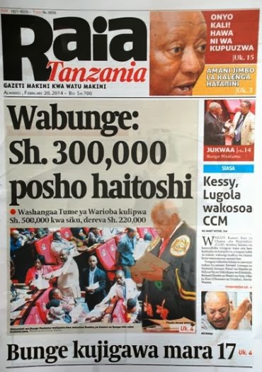 UKURASA WA MAGAZETI YA LEO ALHAMIS FEBRUARY 20, 2014
